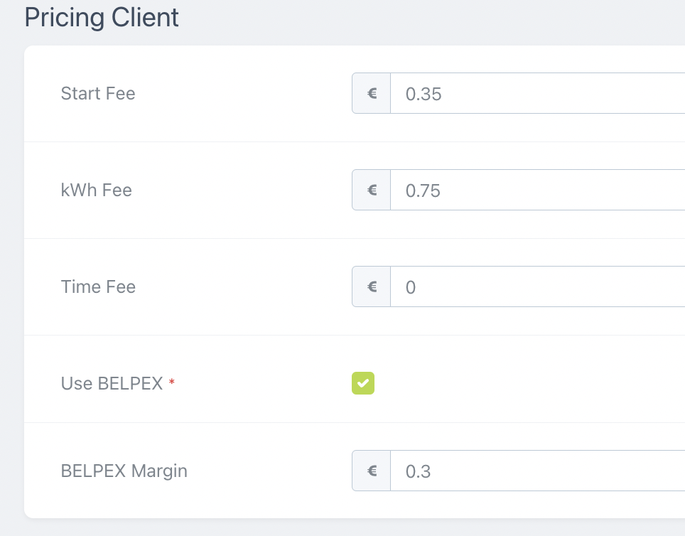 Make sure the "Use BELPEX" checkbox is checked and fill in a reasonable BELPEX Margin below. There is no need to fill in the kWh Fee, this will automatically be adjusted every night at midnight for the next day, based on the maximum price of the day + your margin.
